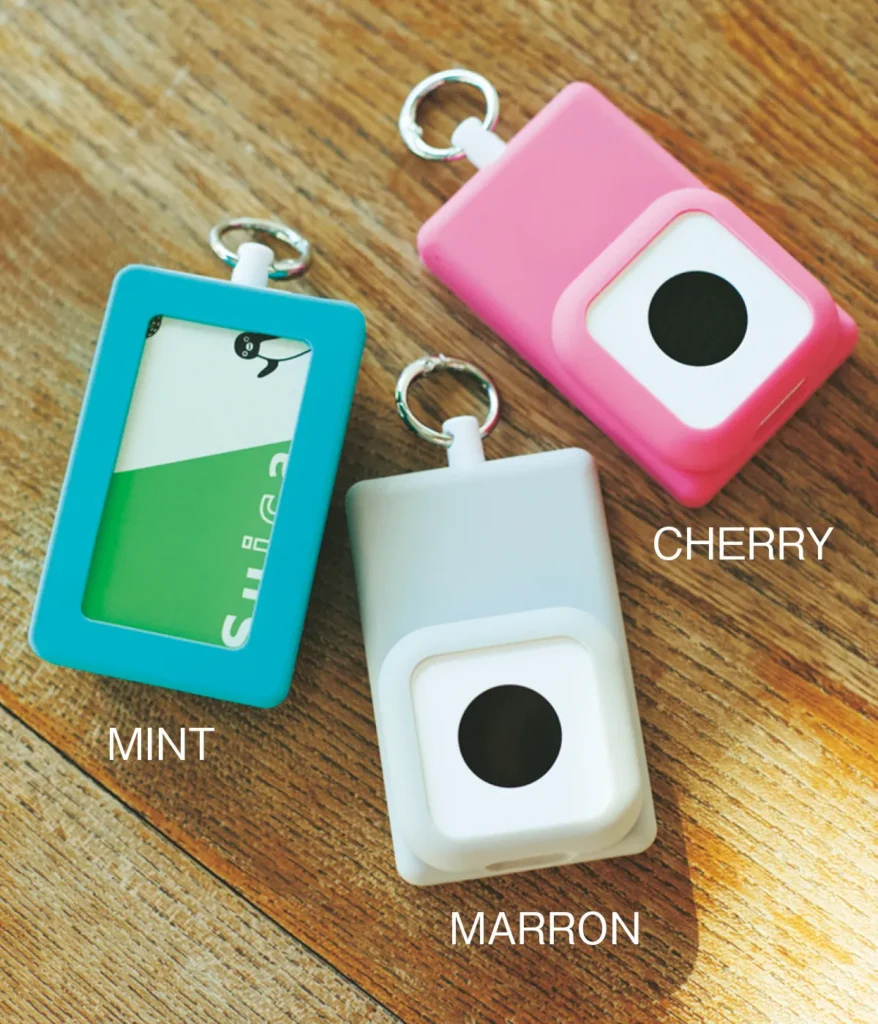 ICカード収納付きの専用シリコンウォレットはCHERRY(ピンク)、MINT(ブルー)、MARRON(グレー)の3色からチョイス可能。フックでランドセルやリュックに引っかけられ、内蔵ストラップが伸びる仕様だからICカードをタッチするのもスムーズ。そのほか、BoTトーク本体のみを収納できるコンパクトなケースも用意されています。